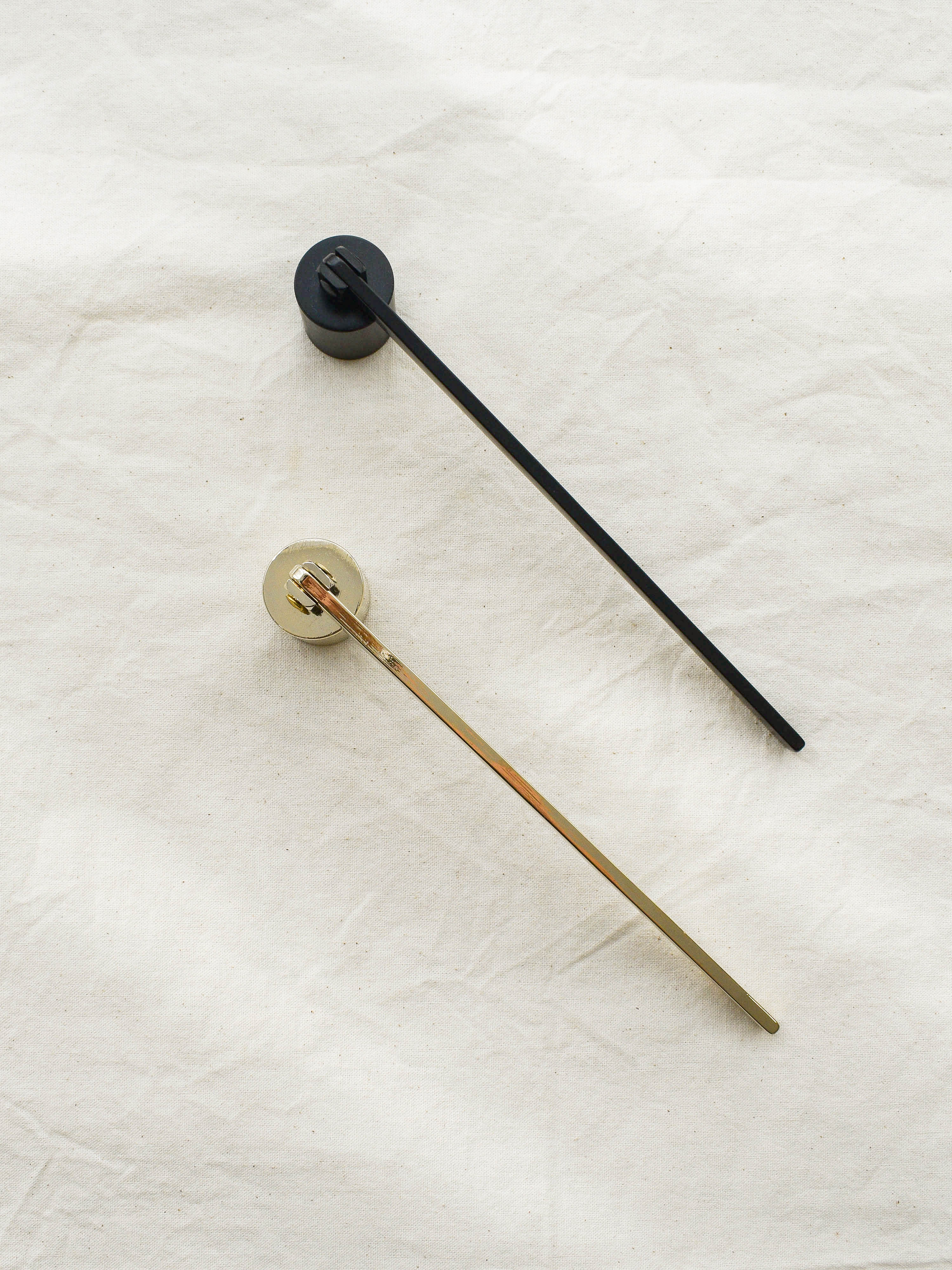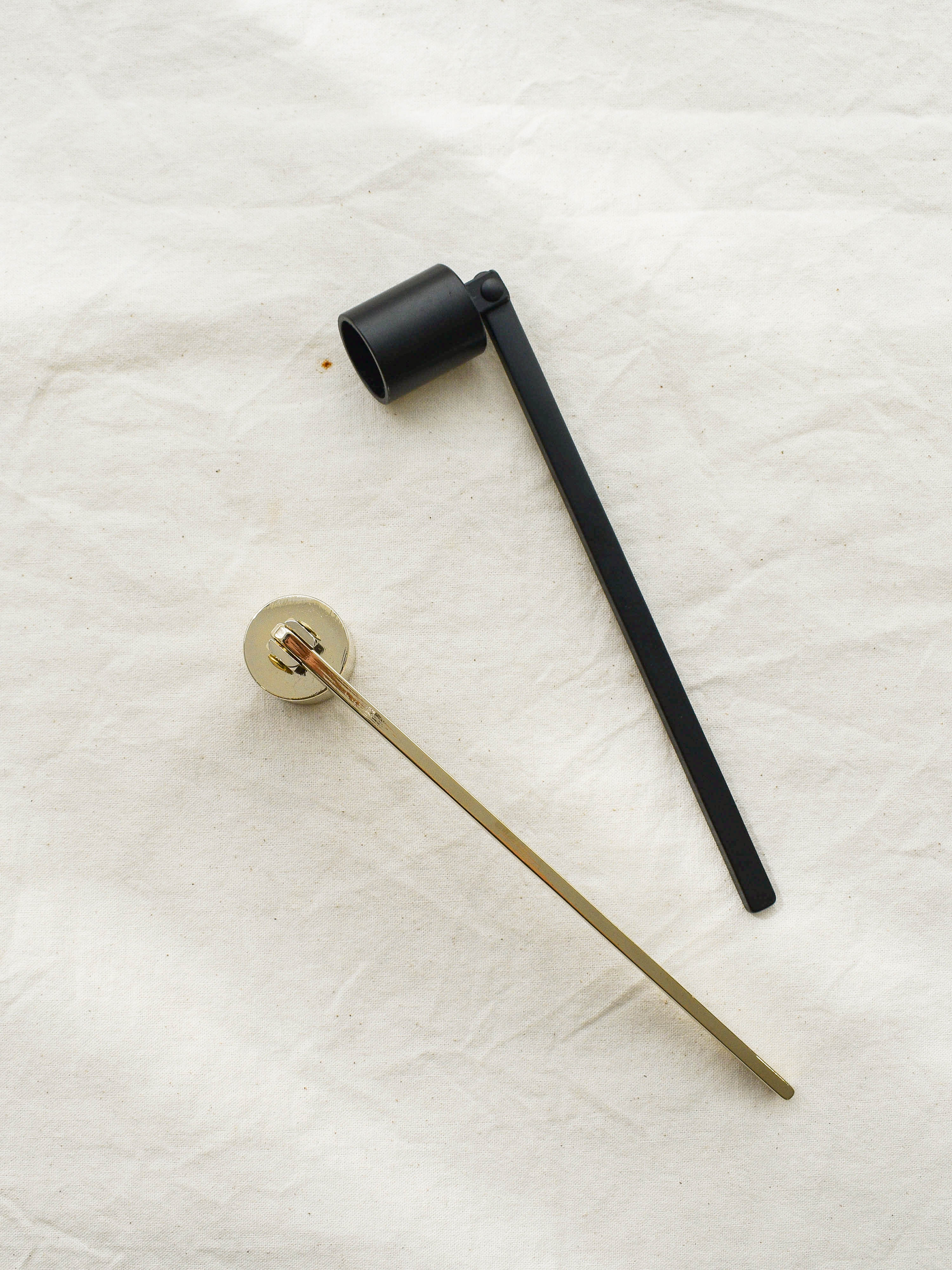 Extinguish your candle flame with a candle snuffer to reduce the smoke produced and prevent hot wax splatter.